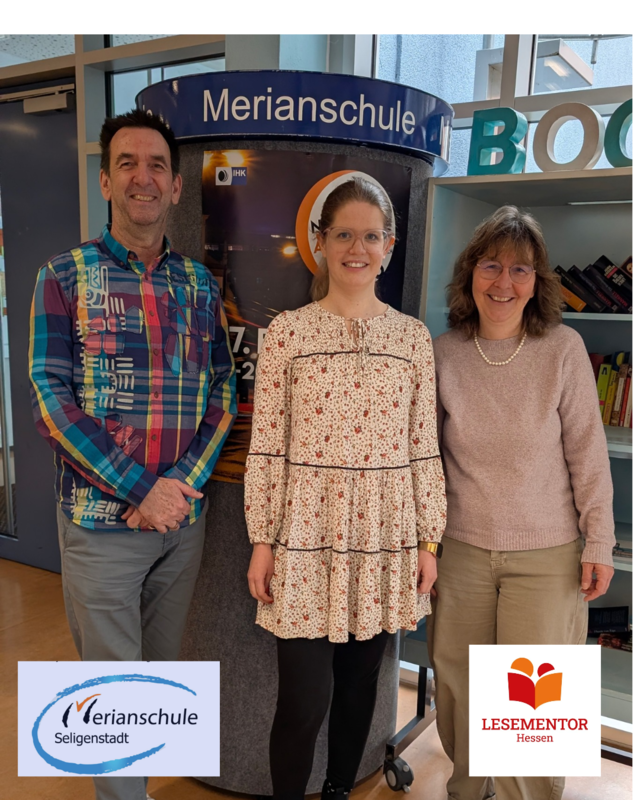 Besuch in der Merianschule, eine unserer Kooperationsschulen in Seligenstadt, bei Schulleiter Hauke Wagner und Eva Lang, unserer Ansprechpartnerin aus der Verwaltung.